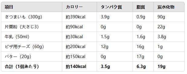 → 1個 約140kcal で、甘さと塩気のバランスがよく、間食やおやつにピッタリ!