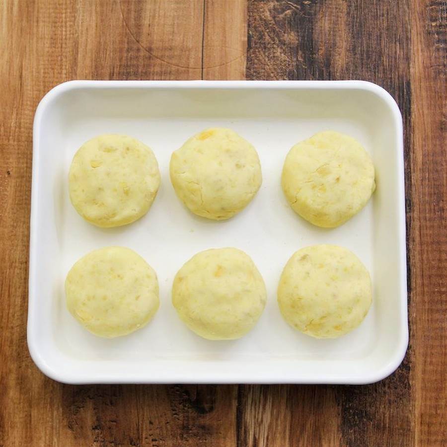 ② まとまりやすくなったら 6等分 にし、丸く成形する。