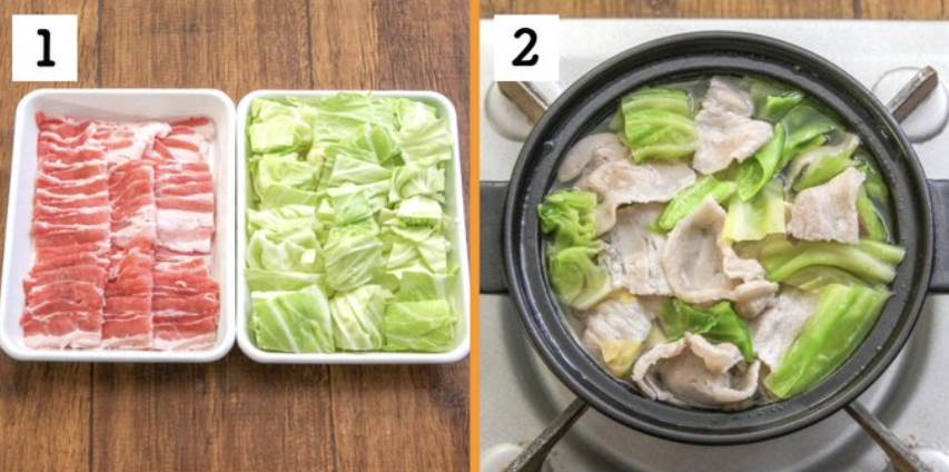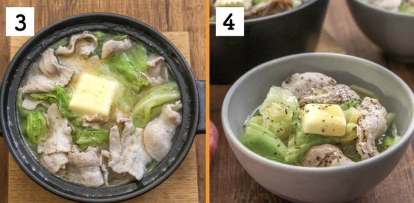 【レシピ:豚バラキャベツの塩バター鍋】(2人分)