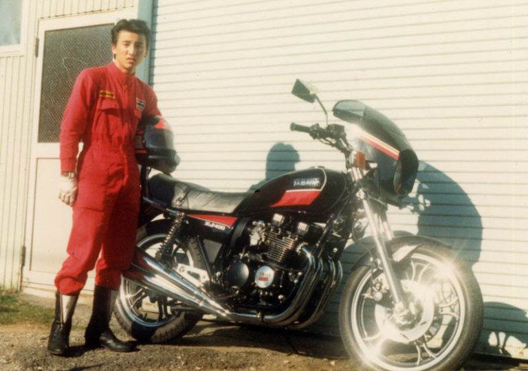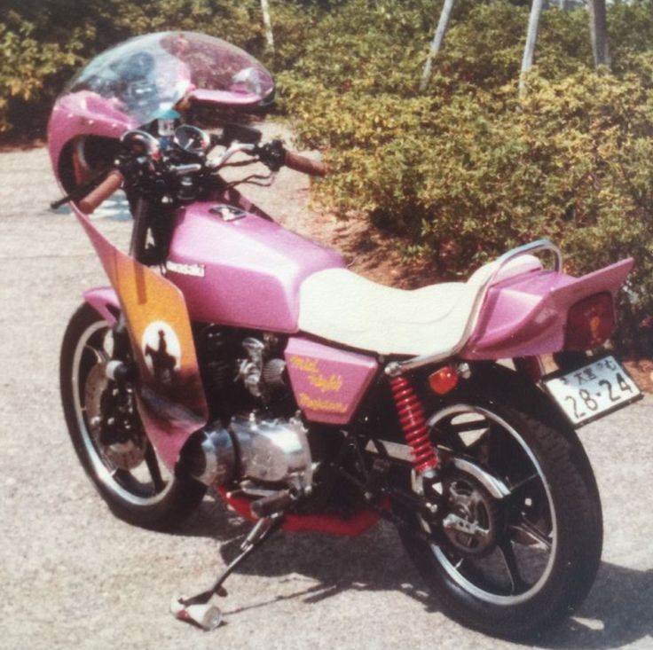 サービスエリアに停まる一台のKawasaki Z400FX。リアには手作りの三角旗、車体にはミーティング帰りの埃がうっすら残る。傍らにしゃがむ少年は、セブンスターに火をつけ、遠くを見つめる。「誰かを待っていたわけじゃない。戻らない時間を見送っていただけなんだ。」