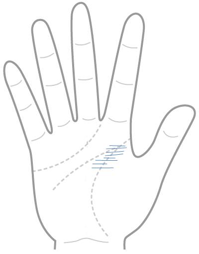 このような手相を持つ人は、現状、相当な気苦労やストレスを感じていることを示しています。ストレス線は、状況によって濃くなったり消えたりする線なので、ストレスの発散を適度にして、楽観的な思考ができる人は、このような相にはなりません。