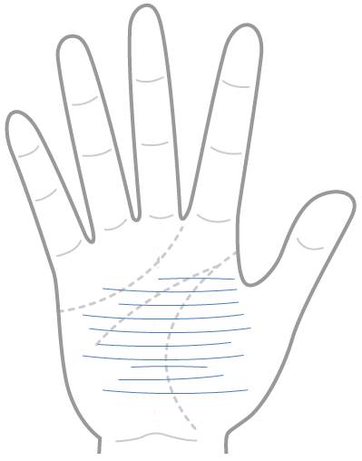 手のひらの基本三線(生命線・知能線・感情線)の上に乗っかるように、細い横線がいっぱい出ている状態。それは、まさに「ストレス線」が密集している状態です。