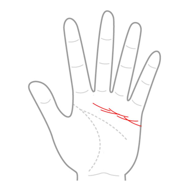 感情線が鎖状になっている人は、神経過敏で細かいことが気になる人、他人を気にしすぎる傾向があります。