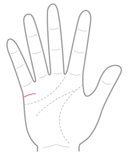結婚線が感情線近くまで下がっている場合は、夫婦関係に黄色信号が灯っているサインかもしれない。結婚後、喧嘩が増えたり、気持ちが満たされなかったり、結婚前には魅力的に見えたところが、今はアラにしか見えなくなったり…。夫婦関係がしっくりきていない状態にあることを示している。