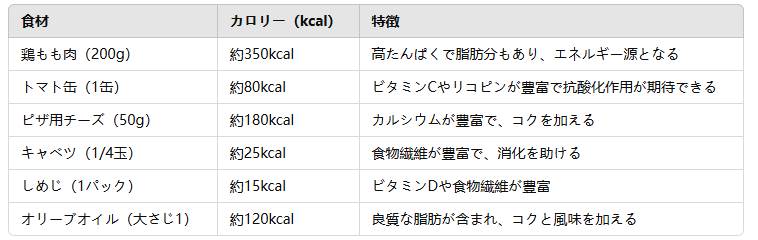 一人分のカロリーとしては適切で、栄養バランスが取れた食事になります。特に、鶏肉とトマト、チーズが豊富なタンパク質やビタミン、カルシウムを提供してくれます。