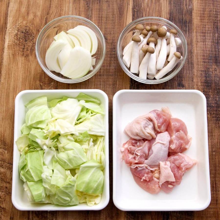 鶏肉と玉葱を炒めたら、次にキャベツ(1/4玉)としめじ(1パック)を加えます。野菜がしんなりしてきたら、トマト缶(1缶)と水(300ml)を加え、コンソメ(大さじ1)、醤油(小さじ1)、おろしニンニク(小さじ1)を入れ、全体をよく混ぜます。これを中火で煮立たせ、約5分ほど煮込みます。
