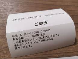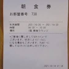 部屋に落ち着いた後、桜子はデスクに置かれた朝食券を見つけた。その券には、「ビュッフェ形式にてご用意しております。衣類・スリッパでのご入店は出来ません。」と書かれていた。桜子は「えっ、すっぱだかじゃないと入店できないのか⁉️ 厳しい…」と冗談めかして言った。