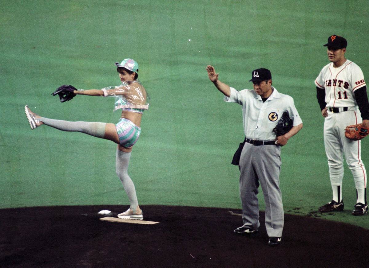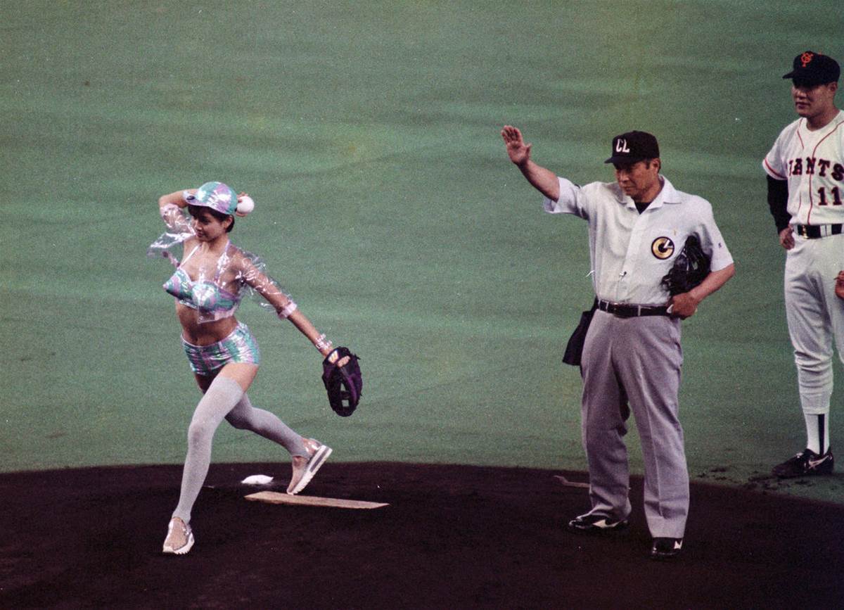 「29年前の始球式では、水着の上から透明のビニール製ユニホームを着る大胆な衣装を着用していた。