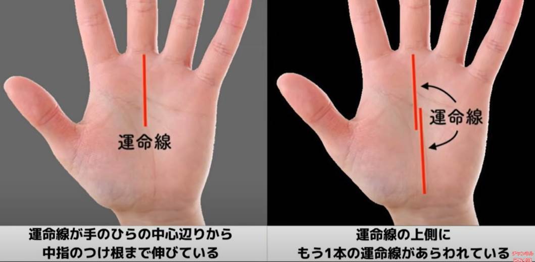 次に、運命線が掌の中心あたりから中指の付け根まで伸びている手相を持つ人です。
