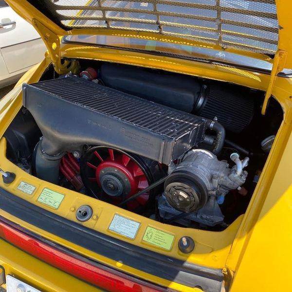 私の愛車、黄色いポルシェは、今年で所有からそろそろ30周年を迎えます。この車との長い付き合いの中で、サーキットを心地よく走れるように少しずつチューニングを重ねてきました。外観は、広いリアウイングやワイドフェンダーが目を引く、レーシングカーのような風貌です。そして、エンジンルームには大型のインタークーラーが鎮座し、強化されたターボチャージャーがその性能を誇示しています。