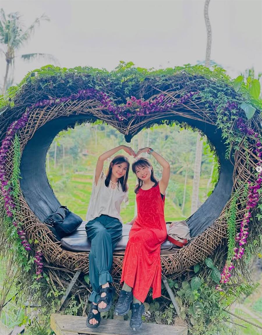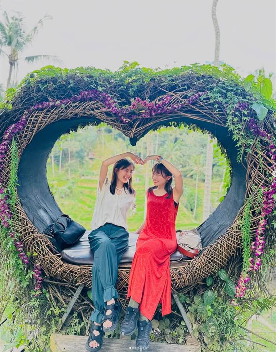 今頃のせる笑 楽しかったねえーーー」とコメントを添え、秋元さんとのバリ旅の様子を投稿。ハート形のソファーに座り、2人でハートポーズをつくる仲睦まじい写真や、美しい建物の前でピースサインを決める姿など、笑顔満載の旅の写真を多数公開しました。