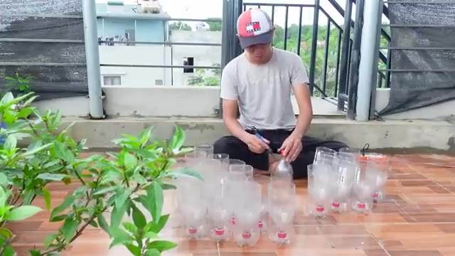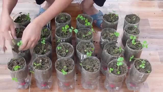 2. **ペットボトルの準備**: 切り取ったペットボトルに土を入れ、セロリの種を上に撒き、薄く土をかけます。