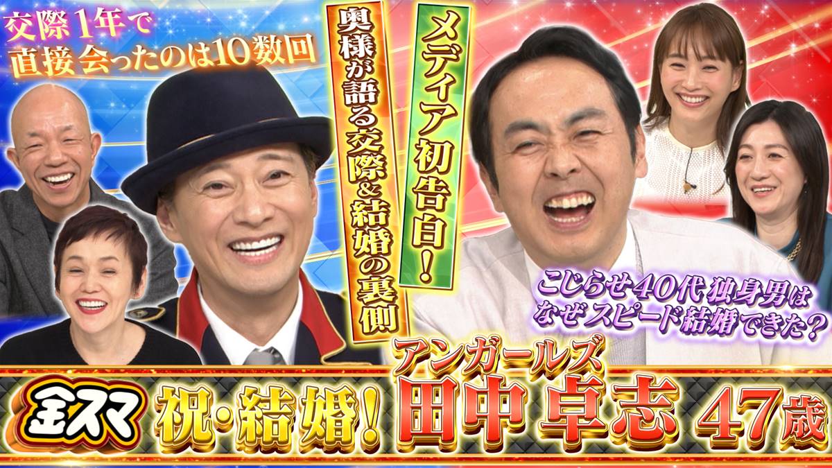 田中は、約10年前の食事会で知り合った女性と、8年後に偶然再会したことをきっかけに交際をスタート。運命的な出会いから、今年1月に結婚しました。番組では、そんな田中の結婚までの軌跡が再現ドラマで紹介され、幸せいっぱいの様子が伝えられました。