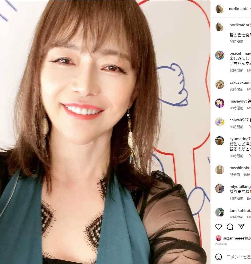 元C.C.ガールズのタレント、青田典子が先日18日、約5週間ぶりに自身のSNSを更新し、ファンは大喜びしました。しかし、喜びも束の間、多くのファンから「別人ではないか?」という声が相次いで話題になっています。青田は「先日、番組の収録をしました✨ 髪の色を変えて、心機一転です⸜( ´ ꒳ ` )⸝♡︎」と書き、穏やかに笑う自撮り写真を投稿しました。髪の長さは変わっていませんが、金髪から明るいブラウンヘアに柔らかそうな髪に変えた姿が印象的です。ファンからは「典子さん素敵です😍😍」「髪色もお洋服もとってもお似合いです✨✨収録されたものを観るのがとっても楽しみです❗️」「典子さんイメチェン素敵です😍」と絶賛のコメントが寄せられました。青田は1998年11月にC.C.ガールズを卒業し、その後は女優・タレントとして幅広く活躍してきました。私生活では2010年7月に歌手の玉置浩二と再婚し、今年2月にはアルバムをリリースし、歌手活動も精力的に行っています。